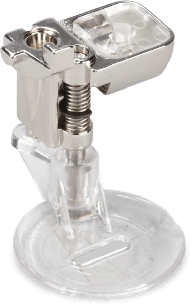 Der Echoquilt- und CutWorkfuss #44C ist der ideale Begleiter für zahlreiche kreative Arbeiten, wie Echo- und Freihandquilten, sowie Fadenmalerei. Die tellerförmige transparente Sohle lässt sich leicht über erhöhte Stoffbereiche bewegen. Das Fadenkreuz und die konzentrischen Kreismarkierungen helfen bei der genauen Stichplatzierung.
