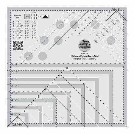 Schnell, leicht & akurat! NĂ€hen Sie gleich 4 „Fliegende GĂ€nse“ auf einen Schlag! Die auf dem Lineal aufgedruckte Zuschnittstabelle funktioniert dabei gleich fĂŒr ZWEI der beliebtesten NĂ€hmethoden fĂŒr Flying Geese. Das Patchworklineal eignet sich dabei um gleich acht verschiedene BlockgröĂen von 1″ x 2 inches bis hin zu 4″ x 8 inches FertigmaĂ. Damit nichts verloren geht sind alle ZuschnittsmaĂe direkt auf dem Lineal aufgedruckt. Oder Sie nutzen Ihre Lieblingsmethode und gebrauchen das Lineal nur um Ihre fliegenden GĂ€nse perfekt auf MaĂ zurĂŒckzuschneiden.