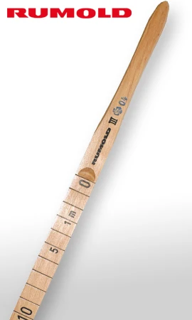 Geeichte Tuch-Elle aus dem Hause Rumold. Gefertigt mit 50cm Länge aus Echtholz (Hartholz) zzgl. Griff. Allseitig Naturholzlackiert mit Zentimetereinteilung auf der Vorderseite und Endplattenbeschlag.