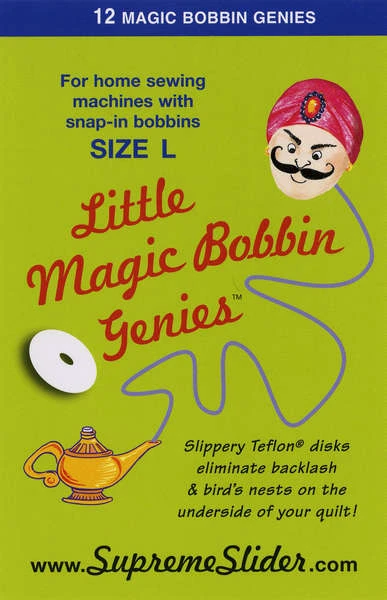 Speziell fĂŒr gĂ€ngige HaushaltsnĂ€hmaschinen mit L Style Spulenkapseln wurden diese Little Genie Magic Bobbin Washers entwickelt. Die Gleithilfen helfen Ihrer NĂ€hmaschine beim besonders Sauberen Abrollen der Unterspule. Hierzu geben Sie einfach ein Little Genie Magic Bobbin Washer in die Unterspulenkapsel hinein bevor Sie die Unterspule einlegen und Ihre Gleithilfe ist somit bereits kinderleicht installiert! Eliminiert somit effektiv je nach Quiltstil die beim Freihandquilten & Stippeln entstehenden Vogelnester und starke Schlaufenbildung auf der Unterseite der Quiltarbeiten, die insbesondere bei schnellem Quilten und starken, hĂ€ufigen Richtungswechseln auftreten können. Die Little Genie Magic Bobbin Washers sind pflegeleicht, robust und langlebig