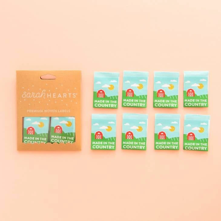 Made In The Country Labels – Sarah Hearts Webetiketten – Premium Woven Labels – Tied With A Ribbon Limited Edition