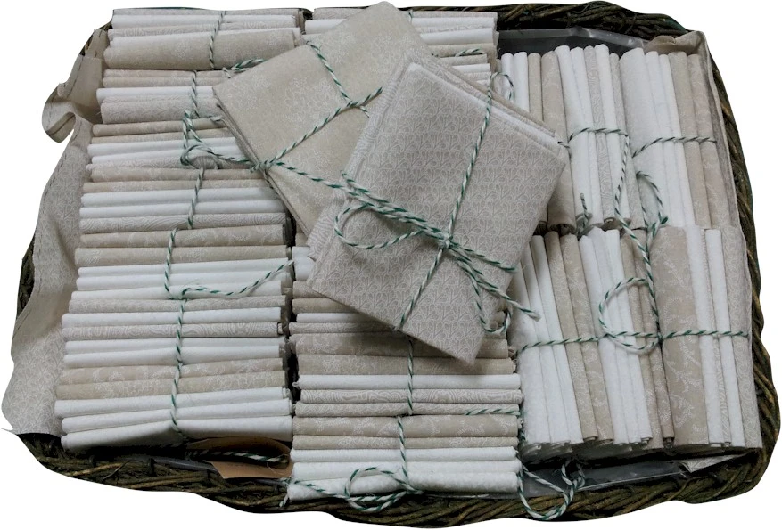 - 5 verschiedene Fat Quarter (etwa 46x55cm) in Naturfarbe Ton in Ton gemusterte Basics: Beige, Creme, Altweiß, Elfenbein u.ä., herstellerseits assortiert und immer wieder anders!